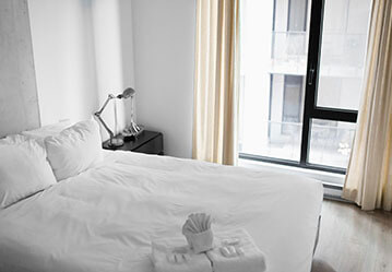كل غرفة تتميز بـالتحكم الفردي بالجو والشرفة وتتضمن الحمام الخصوصي.